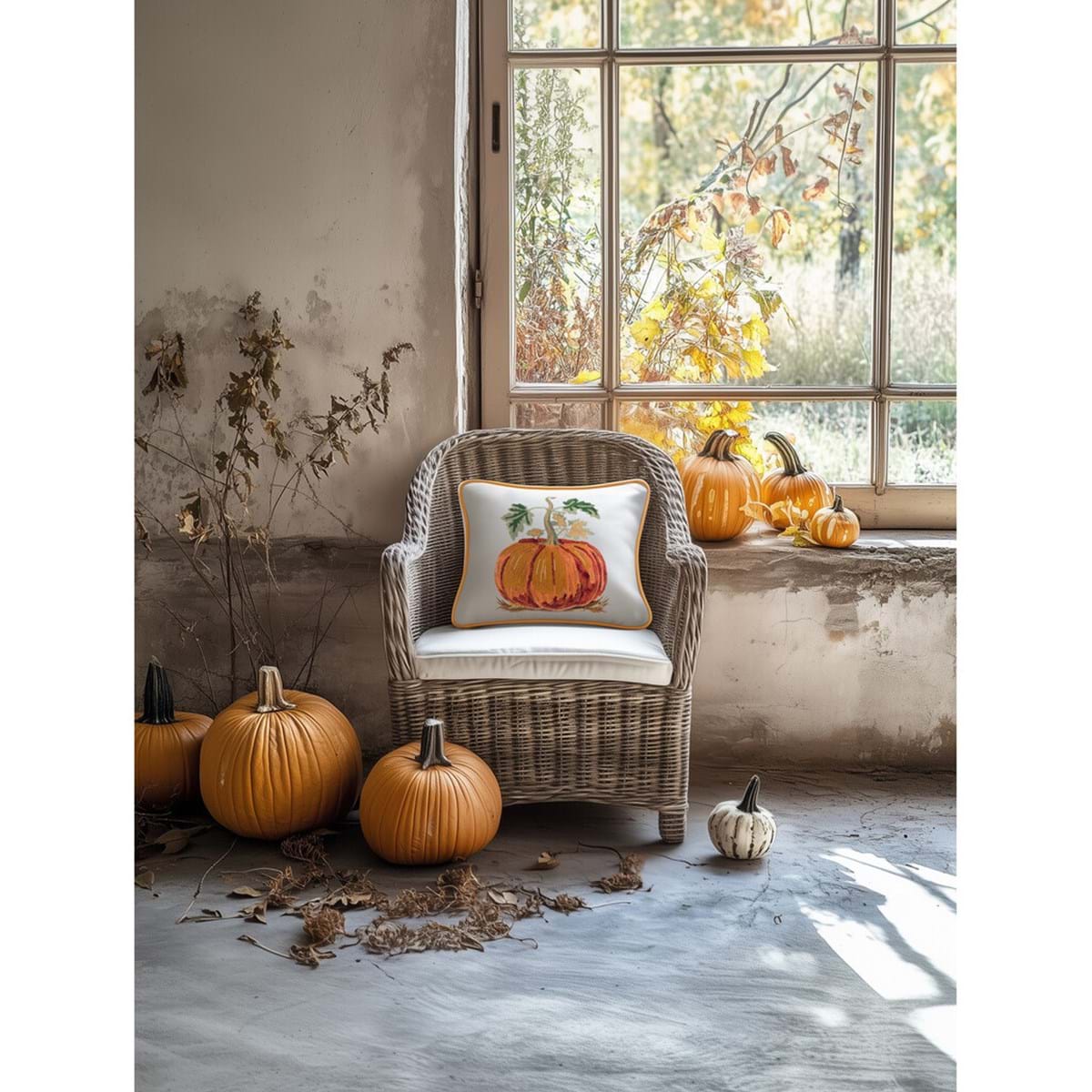 Meraviglioso cuscino a tema autunnale, con ricami, sfoderabile.
